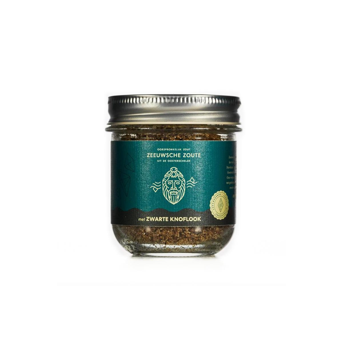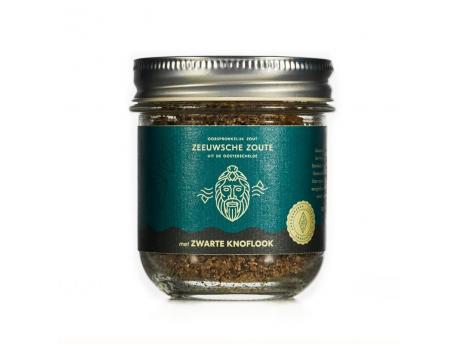 Zout met zwarte knoflook glazen pot bio