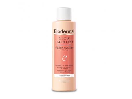 Biodermal Glow Exfoliant is een milde, effectieve exfoliërende lotion die de huidteint en -textuur verbetert zonder daarbij de huidbarrière te beschadigen. Het verwijdert dode huidcellen, stimuleert de celvernieuwing en vermindert fijne lijntjes en pigmentvlekjes. De parfumvrije formule is licht, trekt snel in en zorgt voor een frisse, zachte en stralende huid.