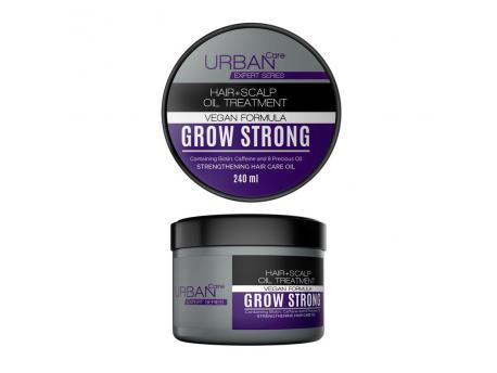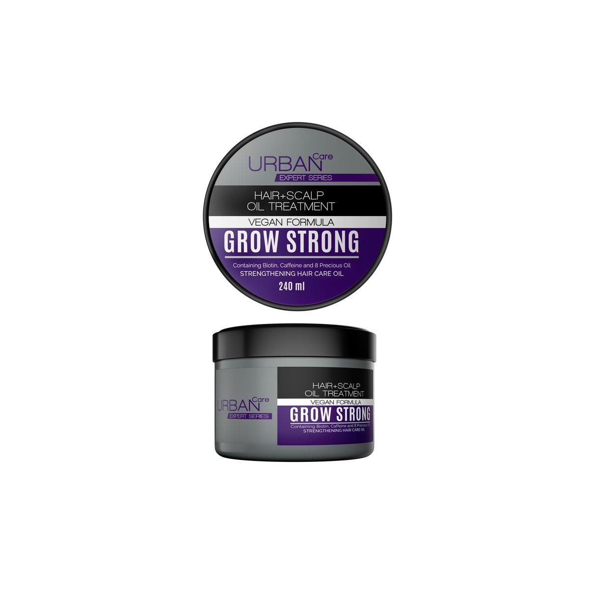 URBAN Care GROW STRONG Versterkende Haarverzorgingsolie; Dankzij de botanische oliën, biotine en cafeïne die het bevat, voedt het je haar en hoofdhuid en zorgt het in korte tijd voor merkbare zachtheid, glans en kracht in je haar. Terwijl het de weerstand van je haar tegen vochtverlies verhoogt, helpt het de haarpunten te behandelen en breuk te voorkomen.