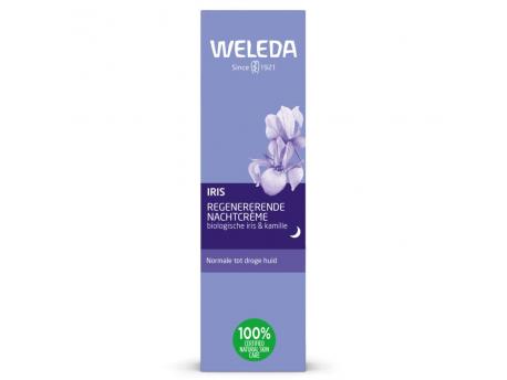 Weleda Iris Regenererende Nachtcrème met extract van iriswortel herstelt de vochtbalans tijdens de nachtelijke regeneratie van de huid en verzorgt haar met krachtige plantenextracten. De huid voelt 's morgens fris en ontspannen aan.